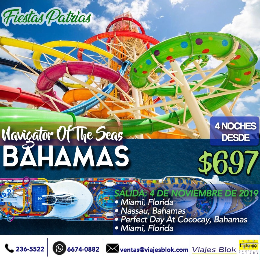 Más Información4 noches - Bahamas, MARINER OF THE SEAS. Saliendo el 2 de Septiembre del 2019.
